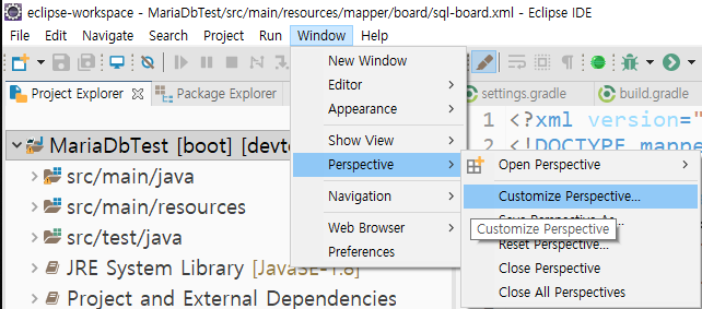 Customize Perspective를 선택