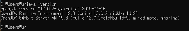위와같이 자바 버전이 확인된다면 설치가 성공된 것이다.
